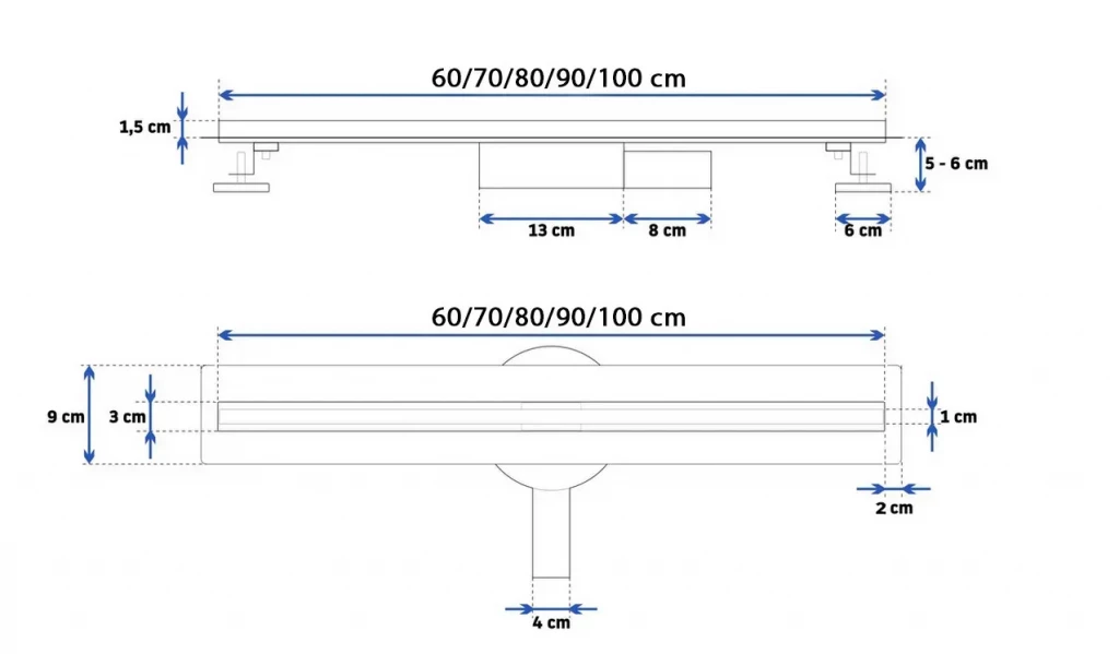 Lineární žlab vyrobený z vysoce kvalitní nerezové oceli AISI 304 je jedním z našich nejlepších lineárních žlabů. Díky speciální výrobní fázi se snadno udržuje v čistotě. Odtok je k dispozici v několika velikostech, aby dokonale ladil s kabinovými nebo sprchovými dveřmi, které najdete v naší nabídce. h3. Manuál lineárního vypouštění