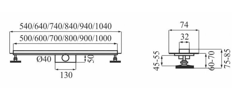 Odtokový žlab je vyroben z nerezové oceli AISI 304 o tloušťce 1,2 - 1,5 mm mm, jeho součásti je také vrchní dekorativní nerezová mřížka o tloušťce 1,5 mm která je odolná proti velkému zatížení a poškrábání. Dalšími výhodami tohoto žlabu je vynikající odtok (až 36 litrů za minutu) s možností otočení 360 st. a to i při silném proudu vody. Snadná je také instalace a to díky nízké montážní výšce (pouze 60-70 mm). Instalační nožky odtokového žlabu umožňují široký rozsah nastavení výšky. Lehce vyjímatelný sifon je vybaven filtrem pro lapání nečistot a protizápachovou přepážkou.
