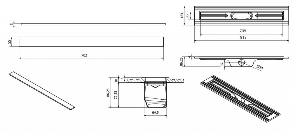 Sprchový žlab LIQUID Linear 85 včetně roštu ve stejné barvě