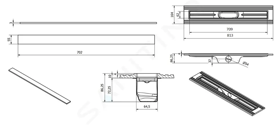 Sprchový žlab LIQUID Linear 85 včetně roštu ve stejné barvě