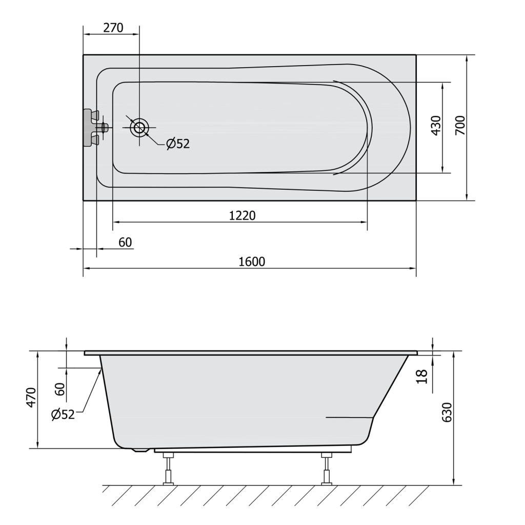 Vana má oproti standardním vanám výšku hrany okraje pouze 18 mm. Tato vana je určena pouze k obezdění, které díky nízké hraně působí estetičtěji, nebo zapuštění do pódia. Nelze ji instalovat s obkladovým panelem.