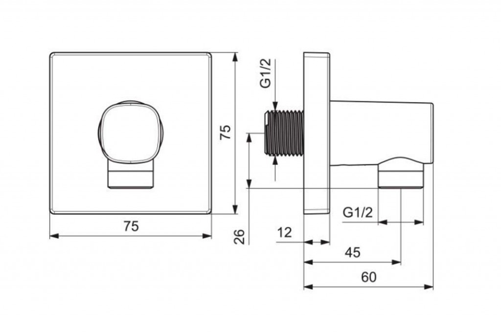 Nástěnné kolínko pro připojení hadice sprchy, DN15
