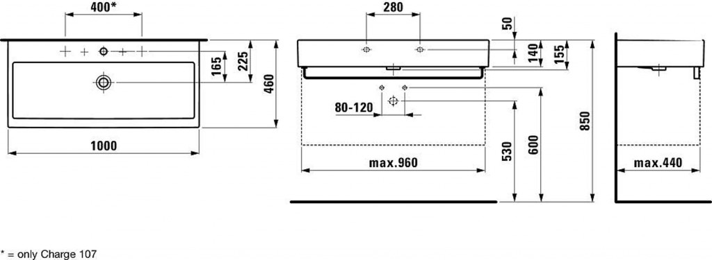 - se 2 otvory pro umyvadlové baterie