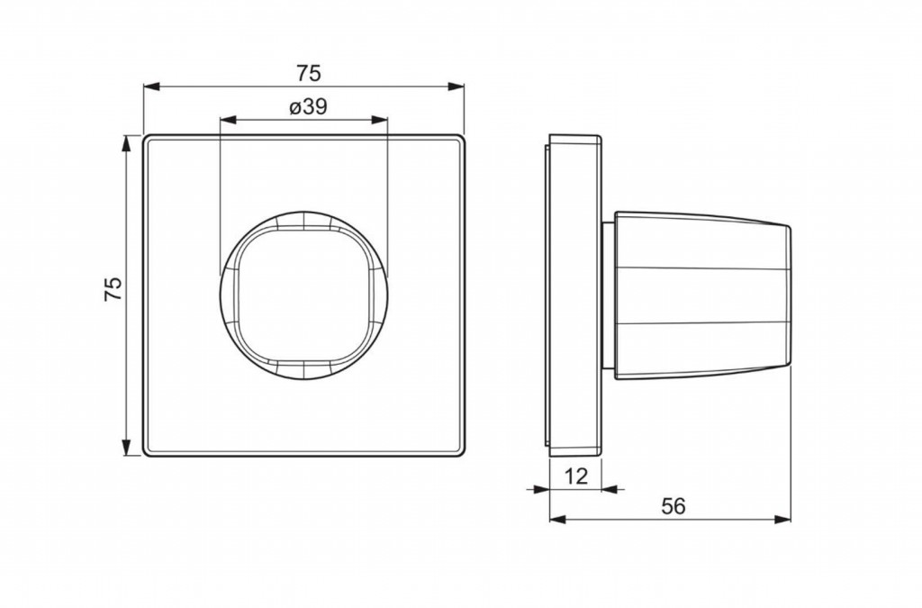 - nástěnná bezšroubová krycí rozeta, rozměry: 75 x 75 mm, zabezpečená proti přetočení