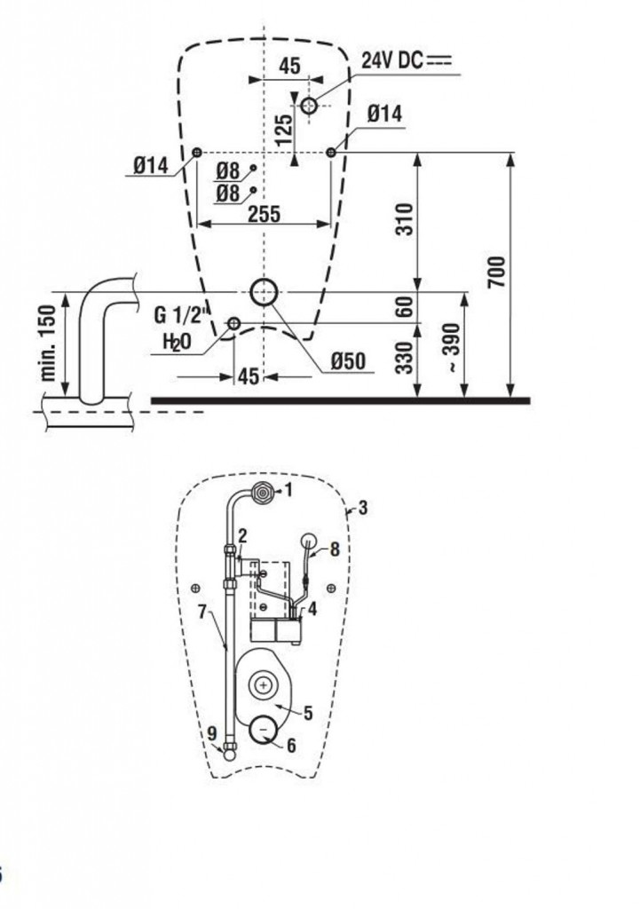 - keramický pisoár a radarovou elektroniku na montážní liště - napájení 24 V