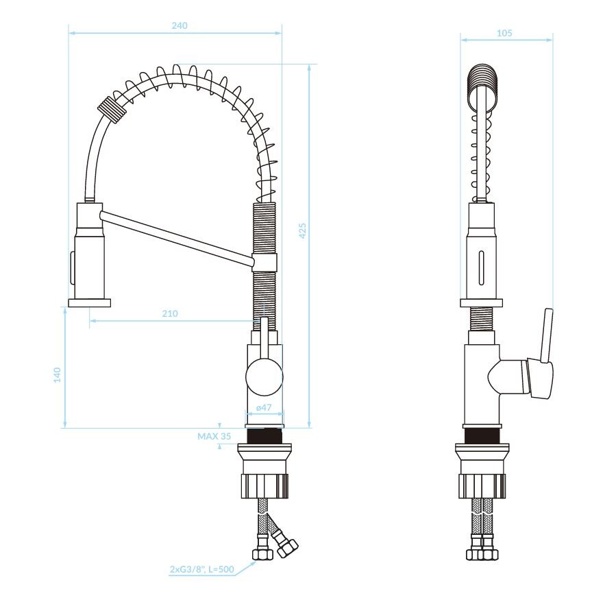 Flexibilní výtok na pružině nabízí volnost pohybu a maximální komfort při každodenním používání. Bez námahy nasměrujete proud vody tam, kam potřebujete – ideální pro mytí velkých kusů nádobí, oplachování zeleniny nebo plnění vysokých hrnců.