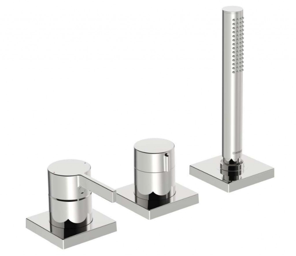 Tříotvorová baterie pro instalaci na okraj vany, hranatá rozeta