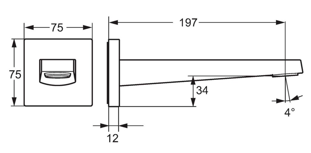 - hranatá krycí rozeta 75 x 75 mm, zaoblené rohy