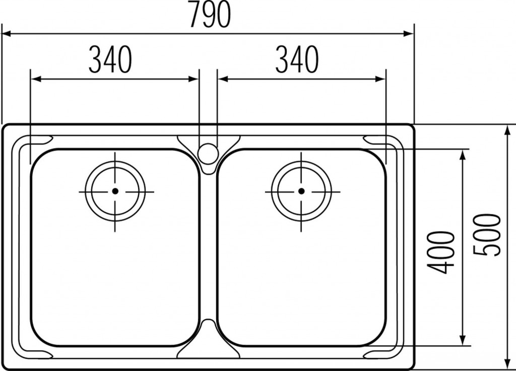 - dřezy: 2 x 340 x 400 x 185 mm