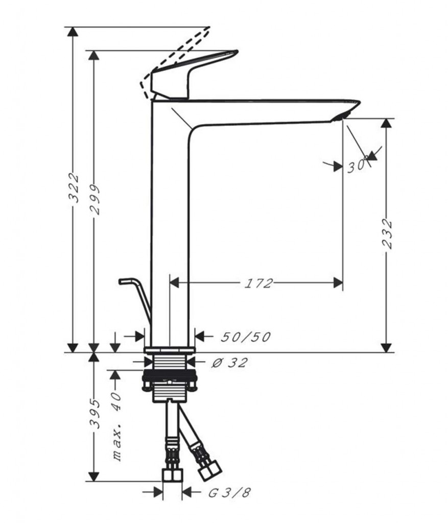 Vysoká umyvadlová baterie s výpustí
