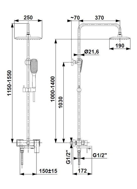 Jako celek má sprchový set s baterií výšku 155 cm, což je ideální velikost i do té nejmenší koupelny. Dešťová hlavice je vzdálená od těla 37 cm, takže ji v pohodě můžete namontovat i do malých sprchových koutů.