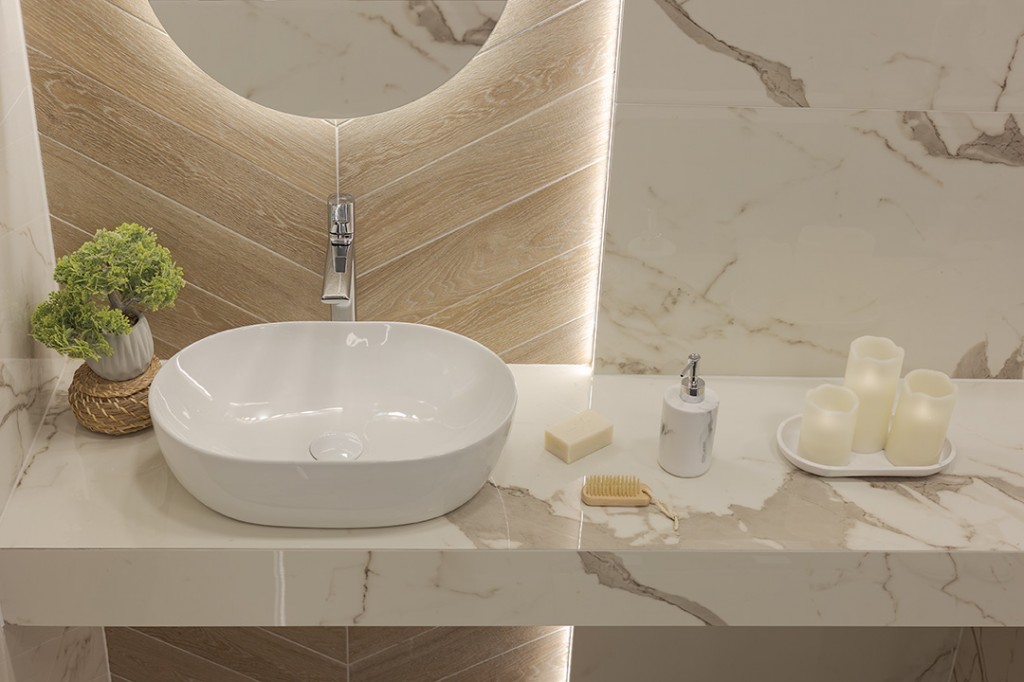 Umyvadlo Lomami na desku je elegantní bílé řešení, které kombinuje moderní design s praktičností. Jeho velký oválný tvar a decentně zaoblené hrany přinášejí do každé koupelny prostor a styl. Umyvadlo je vyrobeno z vysoce kvalitní keramiky a má hladký, glazovaný povrch, který se snadno čistí díky hydrofobním vlastnostem minimalizujícím skvrny. Řada Lomami nabízí modely s otvorem pro baterii i bez něj, což poskytuje flexibilitu při výběru armatur. Díky tomu se umyvadlo perfektně hodí k různým bateriím – od minimalistických až po klasické a elegantní. Možnost sladit armatury v různých povrchových úpravách, jako je chrom, matná černá, zlatá nebo měděná, vám umožňuje vytvářet jedinečná aranžmá, která zdůrazní individuální charakter interiéru. Umyvadlo Lomami je ideální pro moderní, minimalistické, skandinávské a industriální koupelny a kombinuje eleganci s funkčností, což z něj činí vynikající volbu do prostorných interiérů.