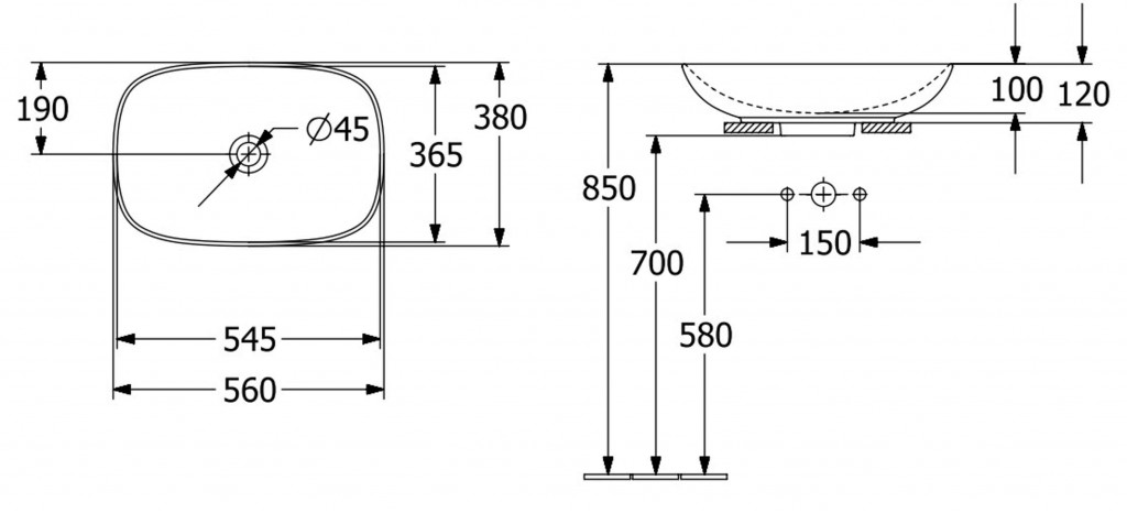 Umyvadlo k postavení na desku nebo koupelnovou skříňku