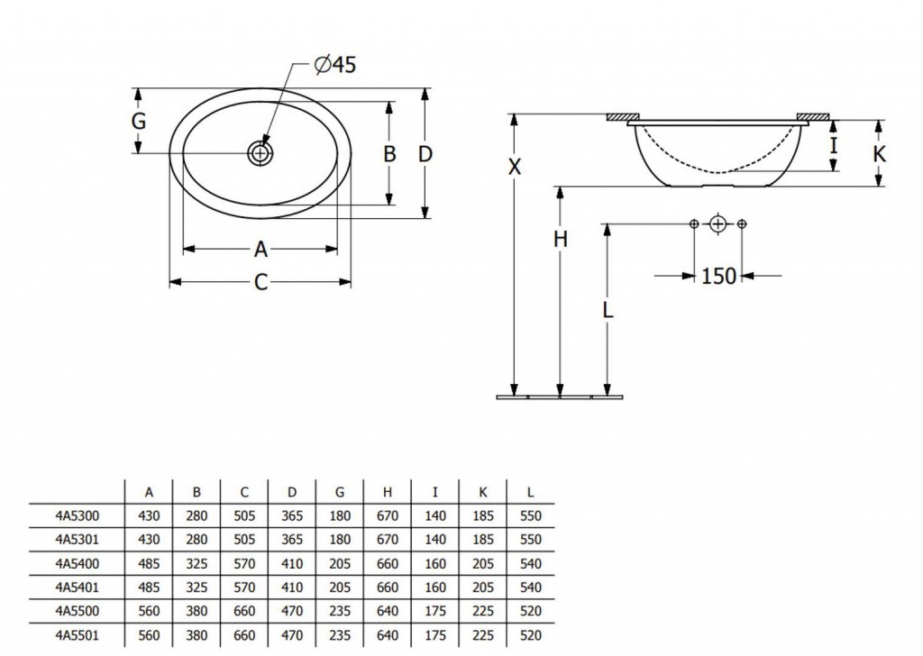 Oválné umyvadlo k zabudování zespodu