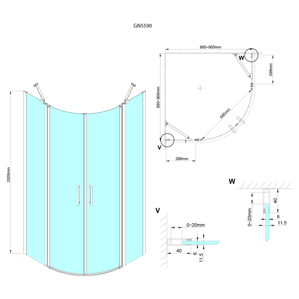 - Dveře je možno instalovat do niky nebo v kombinaci s boční stěnou