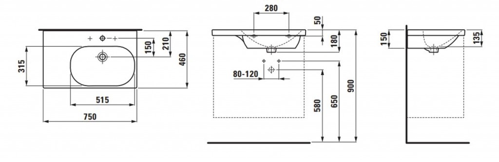 Nábytkové umyvadlo s odkládací plochou vlevo
