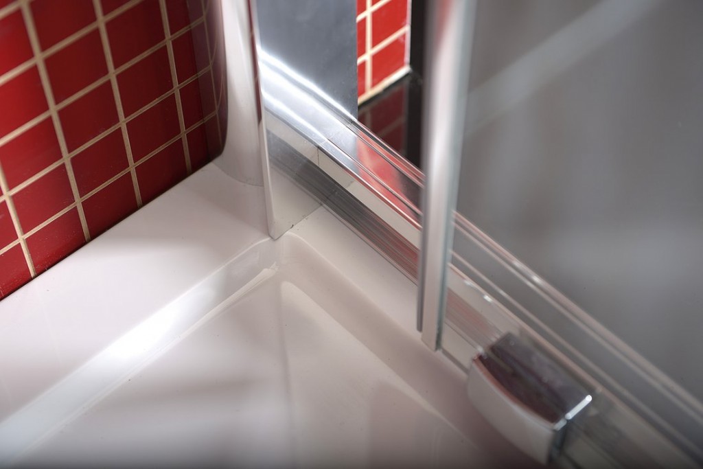 - Pro těsnost aplikujte silikon pouze na venkovní spoj mezi hliníkový profil a vaničku