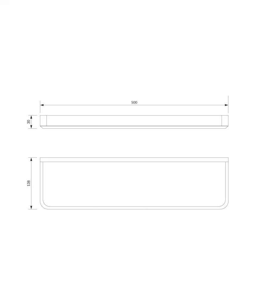 - šířka: 50 cm, výška: 3 cm, vzdálenost od stěny: 14 cm