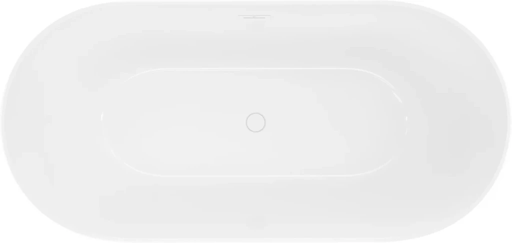 Volně stojící oválná akrylátová vana série LUNA od výrobce MEXEN s přepadem a umístěném odpadu na středu vany.