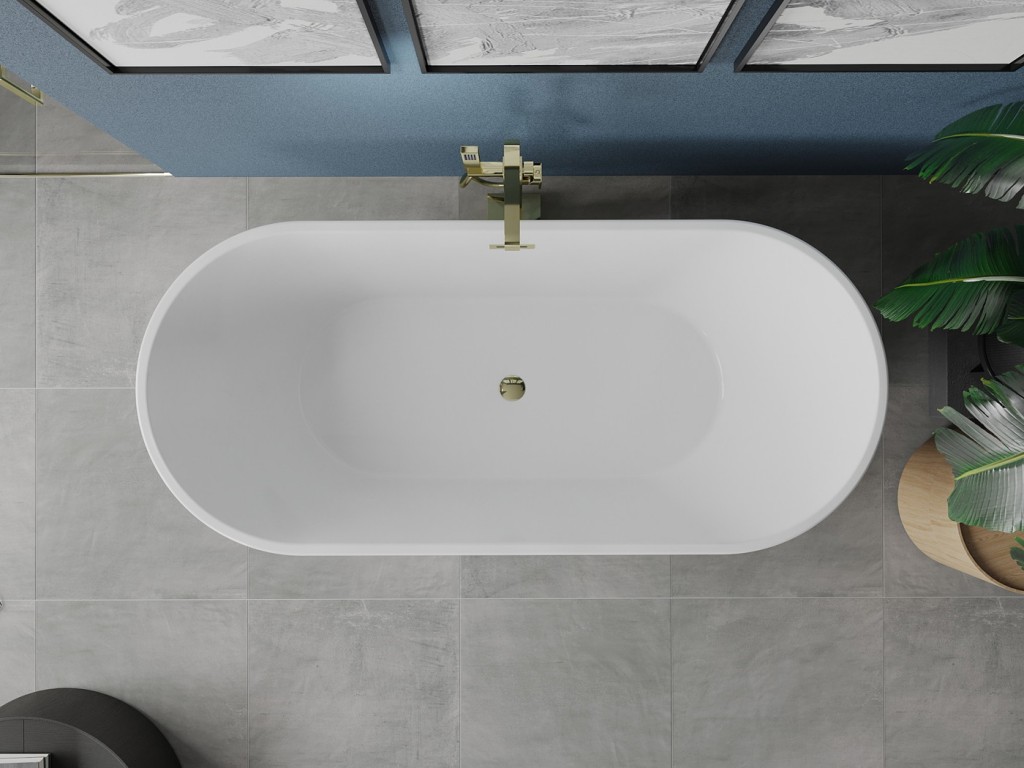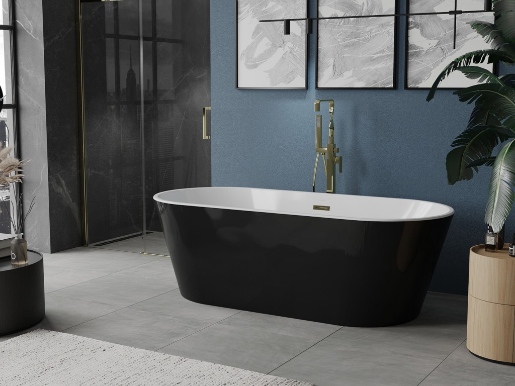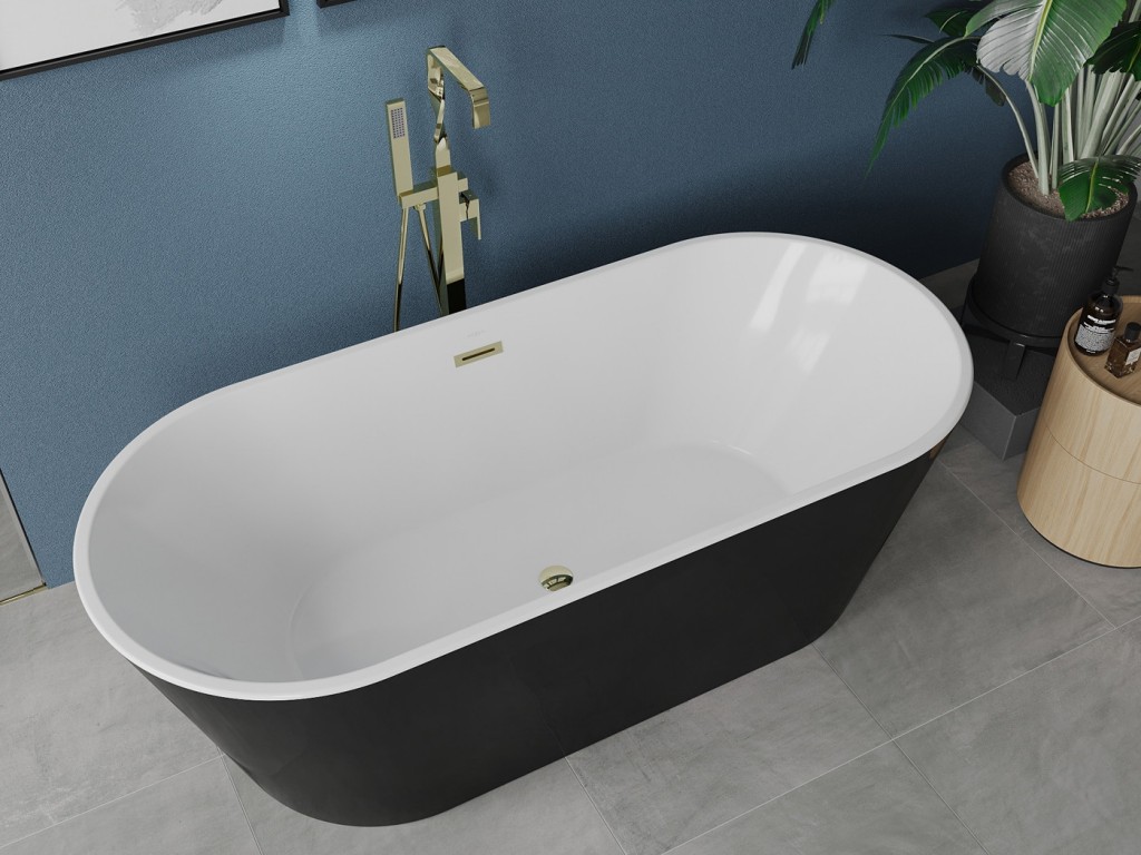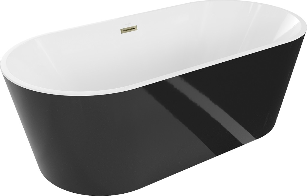 MEXEN - Luna vana volně stojící 180x80, bílá/černá, zlatý sifon (52031808075-G)
