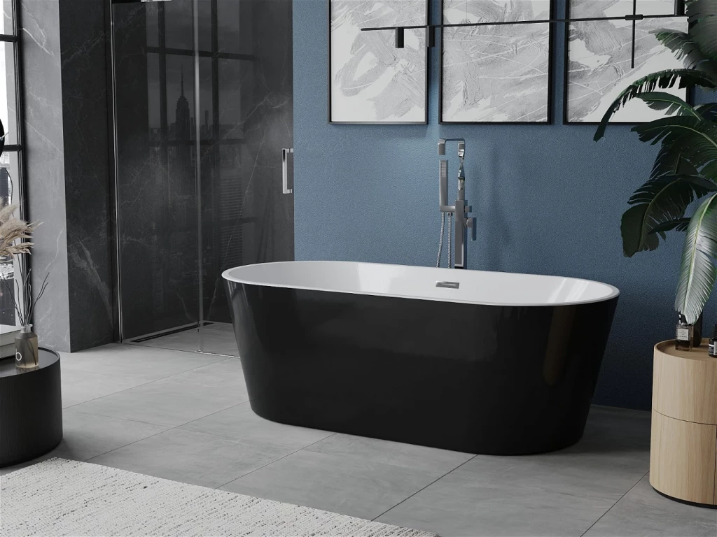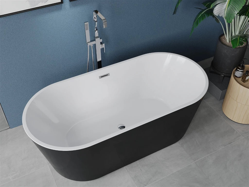 MEXEN - LUNA volně stojící vana 160x75, bílá/černá bez krytky přepadu a zátky (52031607575-SS)