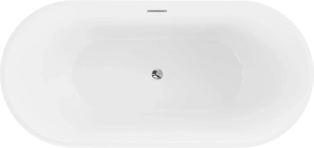 Volně stojící oválná akrylátová vana série LUNA od výrobce MEXEN s přepadem a umístěném odpadu na středu vany.