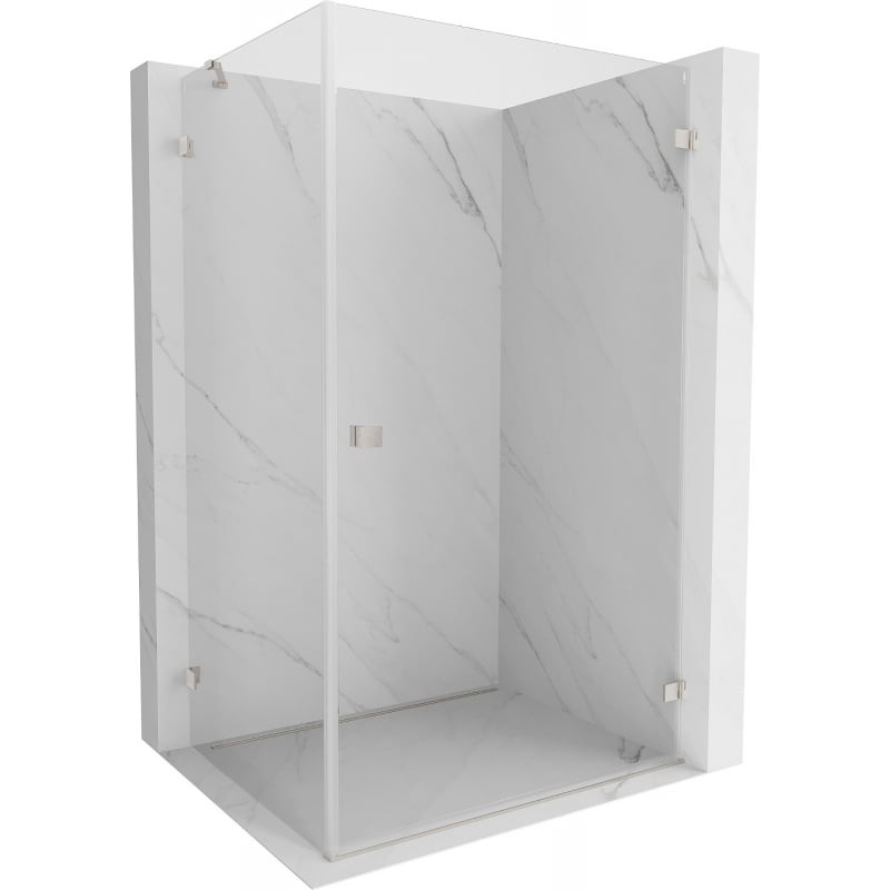 Specifikace produktu: Rozměr: 95x90 cm (pravé dveře 95 cm, stěna 90 cm) Výška: 200 cm Strana montáže: Pravá Vchod: Dveře s výklopnými křídly Barva skla: Průhledná Povrchová úprava: Kartáčovaný nikl Profil: Hliník Úhlový stabilizátor L: Nerezová ocel Typ skla: Tvrzené Tloušťka skla: dveře 6 mm, stěna 8 mm Povlak pro snadné čištění Možnost nastavení šířky Dva montážní systémy: - S profilem, který umožňuje vyrovnání nerovností stěn - Bez profilu v případě dokonale rovných stěn Možnost montáže na sprchovou vaničku nebo obklady Mechanismus pro zvedání a spouštění dveří Mosazné svorky v jedné rovině se skleněnou tabulí Magnetický proužek a elastomerové těsnění pro odvod vody Hliníkový práh pro těsnění dveří