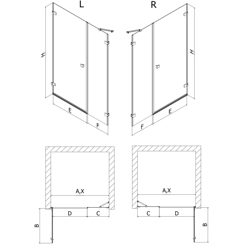 Tloušťka skla: dveře 6 mm, stěna 8 mm