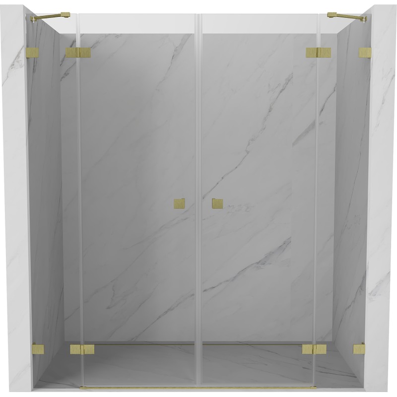 Specifikace produktu: Rozměr: 180x200 cm Strana montáže: Univerzální Vchod: Otevíravý Barva skla: Průhledná Povrchová úprava: Kartáčované zlato Profil: Hliník Nosná konstrukce: Nerezová ocel Typ skla: Tvrzené Tloušťka skla: 8 mm Povrchová úprava pro snadné čištění Nastavitelná šířka Dva montážní systémy: - S profilem, který umožňuje vyrovnání nerovností stěn - Bez profilu pro dokonale rovné stěny Možnost montáže na sprchovou vaničku nebo dlaždice Mechanismus pro zvedání a spouštění dveří Mosazné svorky a panty v jedné rovině se skleněnou tabulí Magnetický proužek a elastomerové těsnění pro odvod vody Hliníkový práh těsnění dveří