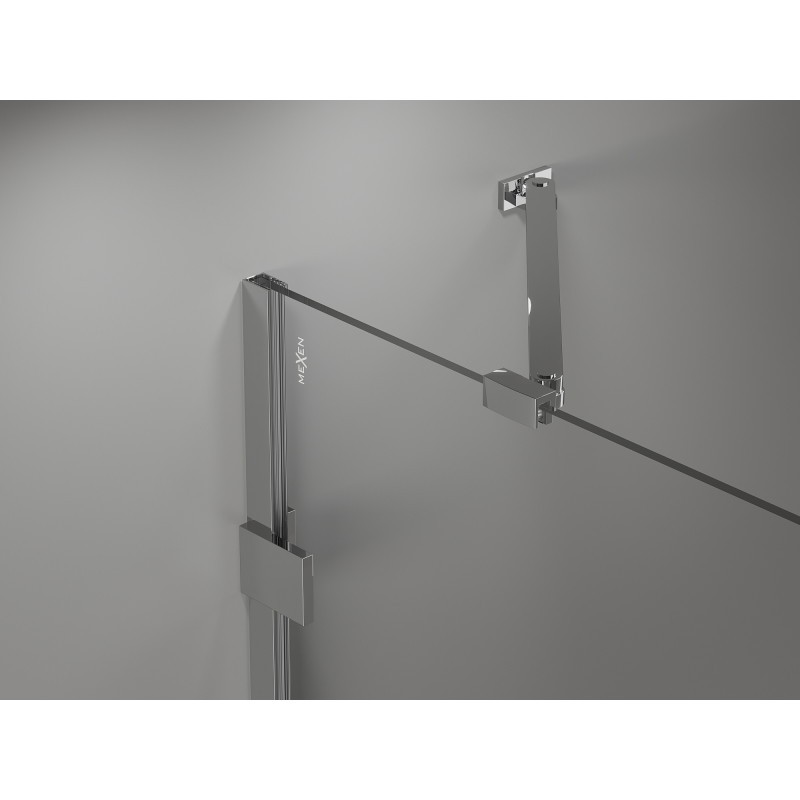 Instalace je flexibilní: Dveře sprchového koutu lze instalovat buď přímo na rovnou stěnu, nebo pomocí hliníkového vyrovnávacího profilu, pokud nejsou stěny dokonale rovné. Stabilitu zajišťují úhlové vzpěry z nerezové oceli, které dveře pevně kotví v horní části.
