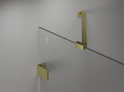 Specifikace produktu: Rozměr: 120x120 cm Výška: 200 cm Strana montáže: Univerzální Vchod: Dveře s výklopnými křídly Barva skla: Průhledná Povrchová úprava: Kartáčované zlato Profil: Hliník Typ skla: Tvrzené Tloušťka skla: 8 mm Povrchová úprava pro snadné čištění Možnost nastavení šířky Dva montážní systémy: - S profilem, který umožňuje vyrovnání nerovností stěn - Bez profilu pro dokonale rovné stěny Možnost montáže na sprchovou vaničku nebo obklady Mechanismus pro zvedání a spouštění dveří Mosazné svorky a panty v jedné rovině se skleněnou tabulí Magnetický proužek a elastomerové těsnění pro odvod vody Hliníkový práh těsnění dveří