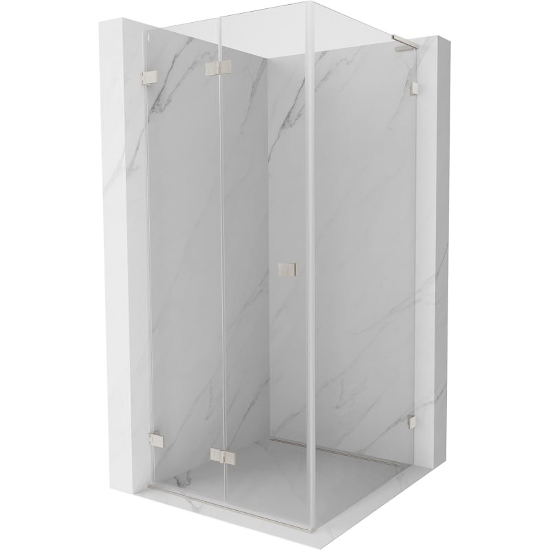 Specifikace produktu: Rozměr: 90x90 cm (levé dveře 90 cm, stěna 90 cm) Výška: 200 cm Strana montáže: Levá Vchod: Skládací dveře Barva skla: Průhledná Povrchová úprava: Kartáčovaný nikl Profil: Hliník Úhlový stabilizátor L: Nerezová ocel Typ skla: Tvrzené Tloušťka skla: dveře 6 mm, stěna 8 mm Povlak pro snadné čištění Možnost nastavení šířky Dva montážní systémy: - S profilem, který umožňuje vyrovnání nerovností stěn - Bez profilu v případě dokonale rovných stěn Možnost montáže na sprchovou vaničku nebo obklady Mosazné svorky a panty v jedné rovině se skleněnou tabulí Magnetický proužek a elastomerové těsnění pro odvod vody Hliníkový práh těsnění dveří