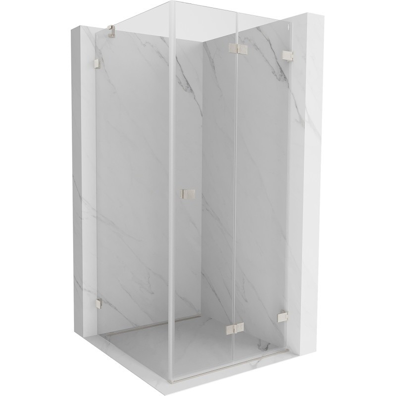 Specifikace produktu: Rozměr: 90x90 cm (pravé dveře 90 cm, stěna 90 cm) Výška: 200 cm Strana montáže: Pravá Vchod: Skládací dveře Barva skla: Průhledná Povrchová úprava: Kartáčovaný nikl Profil: Hliník Nosná konstrukce: Nerezová ocel Typ skla: Tvrzené Tloušťka skla: dveře 6 mm, stěna 8 mm Povlak pro snadné čištění Možnost nastavení šířky Dva montážní systémy: - S profilem, který umožňuje vyrovnání nerovností stěny - Bez profilu v případě dokonale rovných stěn Možnost montáže na sprchovou vaničku nebo obklady Mosazné svorky a panty v jedné rovině se skleněnou tabulí Magnetický proužek a elastomerové těsnění pro odvod vody Hliníkový práh těsnění dveří
