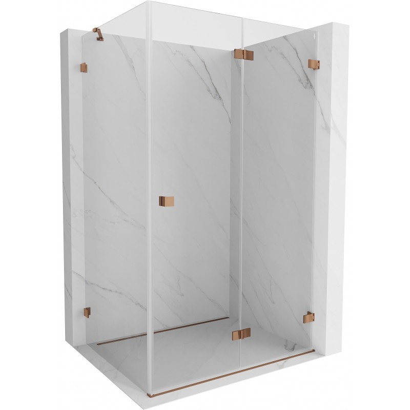 Specifikace produktu: Rozměr: 95x90 cm (pravé dveře 95 cm, stěna 90 cm) Výška: 200 cm Strana montáže: Pravá Vchod: Skládací dveře Barva skla: Průhledná Povrchová úprava: Růžové zlato Profil: Hliník Nosník: Nerezová ocel Typ skla: Tvrzené Tloušťka skla: dveře 6 mm, stěna 8 mm Povlak pro snadné čištění Možnost nastavení šířky Dva montážní systémy: - S profilem, který umožňuje vyrovnání nerovností stěny - Bez profilu v případě dokonale rovných stěn Možnost montáže na sprchovou vaničku nebo obklady Mosazné svorky a panty v jedné rovině se skleněnou tabulí Magnetický proužek a elastomerové těsnění pro odvod vody Hliníkový práh těsnění dveří