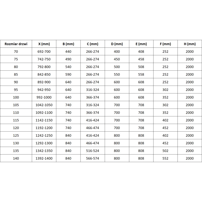| Šířka otvoru | 700 |