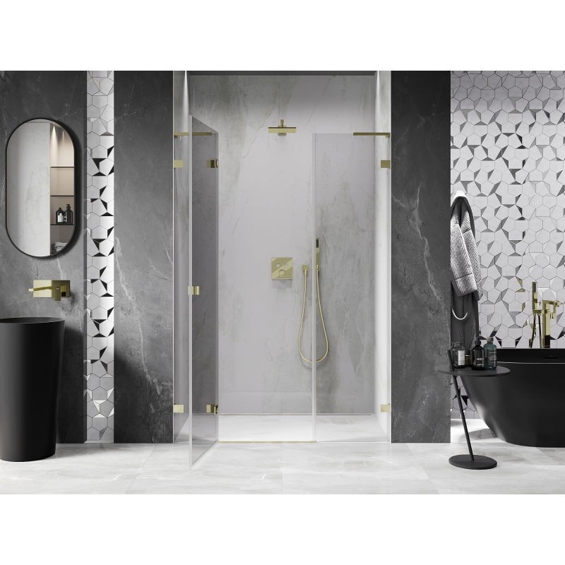 Sprchové dveře LUNAR L do niky jsou dostupné v šířkách od 120 do 160 cm a v bohaté paletě povrchových úprav: chrom, bílá, zlatá, kartáčované zlato, růžové zlato, kartáčovaná měď, nikl, kartáčovaná šedá a černá. Díky této rozmanitosti si snadno zvolíte variantu, která bude nejen rozměrově, ale i barevně ladit s vaší koupelnou.