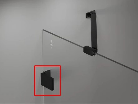 Upevnění skleněné sprchové stěny je klíčovým prvkem pro správnou instalaci sprchových zástěn LUNAR od výrobce MEXEN. Kovová součást, označená červeným rámečkem, představuje držák, který slouží k pevné fixaci skleněné stěny na stěnu koupelny. Tento prvek nejenže poskytuje stabilitu, ale také zajišťuje, že skleněná stěna zůstane pevně na svém místě i při každodenním používání sprchy.