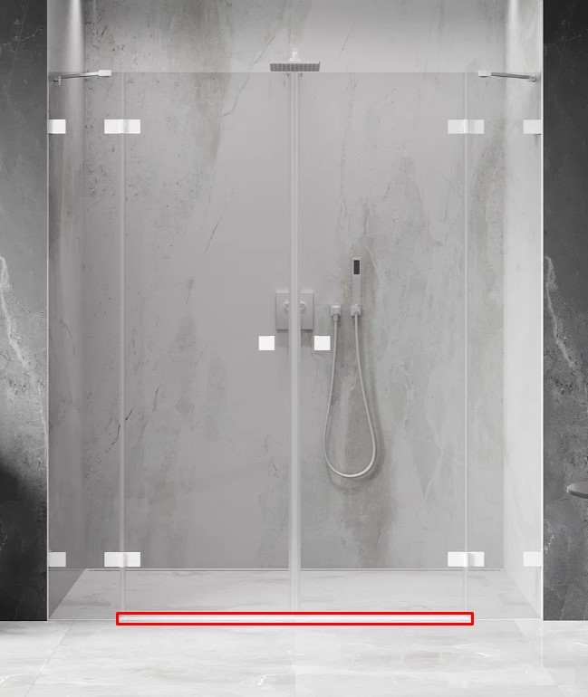 Práh je vyroben z odolného hliníku. Kromě funkčnosti má práh také estetickou roli, protože dotváří vzhled sprchového koutu a zajišťuje jeho moderní a čistý vzhled. Práh efektivně zajistí ochranu proti rozstřikování vody během sprchování a přispívá k udržení pořádku a sucha v koupelně.