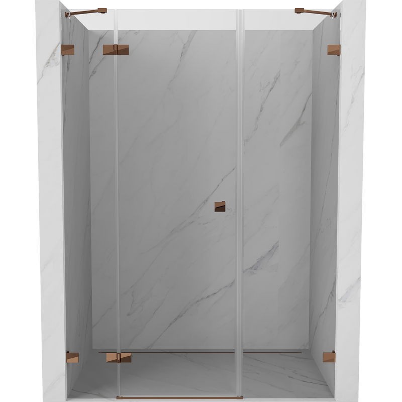 Specifikace produktu: Rozměr: 160x200 cm Strana montáže: Levá Vchod: Otevíravý Barva skla: Průhledná Povrchová úprava: Růžové zlato Profil: Hliník Konzola: Nerezová ocel Typ skla: Tvrzené Tloušťka skla: 8 mm Povrchová úprava pro snadné čištění Nastavitelná šířka Dva montážní systémy: - S profilem, který umožňuje vyrovnání nerovností stěn - Bez profilu pro dokonale rovné stěny Možnost montáže na sprchovou vaničku nebo obklady Mechanismus pro zvedání a spouštění dveří Mosazné svorky a panty v jedné rovině se skleněnou tabulí Magnetický proužek a elastomerové těsnění pro odvod vody Hliníkový práh těsnění dveří