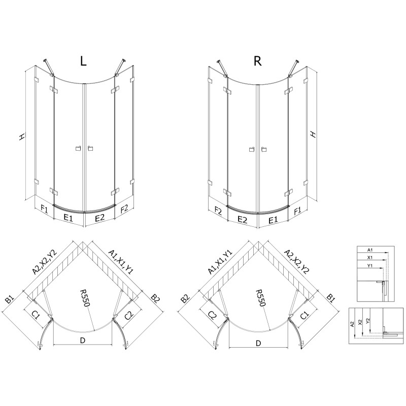 Pozor: Sprchové kouty LUNAR v asymetrickém provedení nejsou univerzální – před zakoupením je nutné zvolit, zda potřebujete pravé nebo levé otevírání. Správná volba směru je důležitá pro bezproblémovou instalaci i používání.