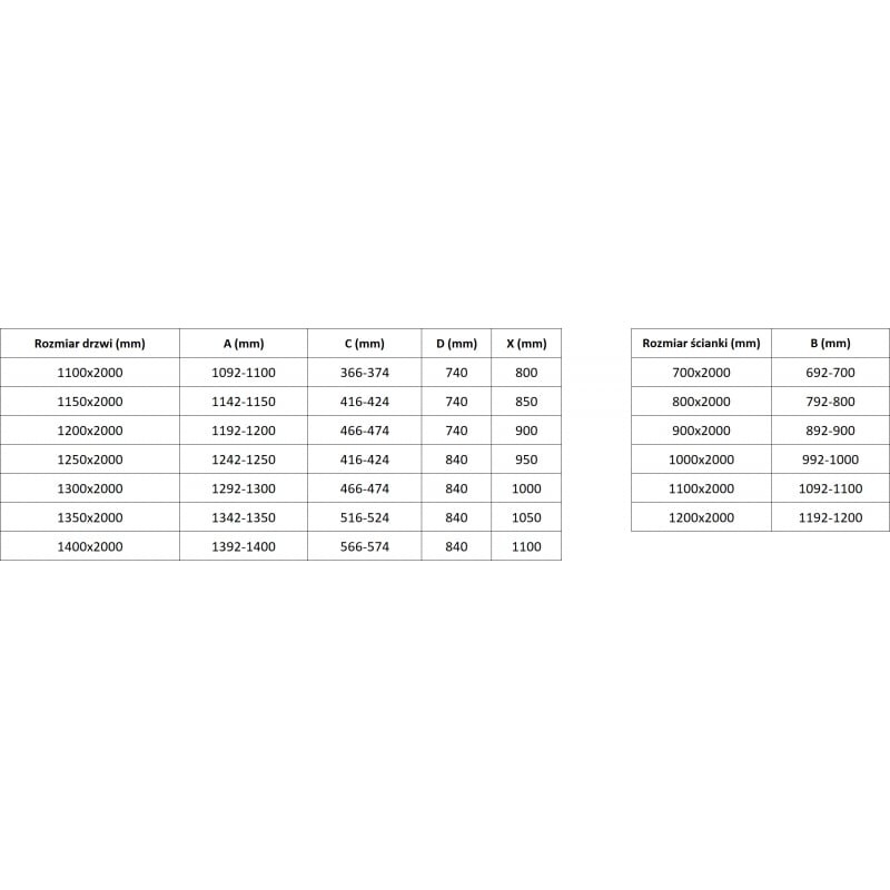 Rozměr: 115x80 cm (levé dveře 115 cm, stěna 80 cm)