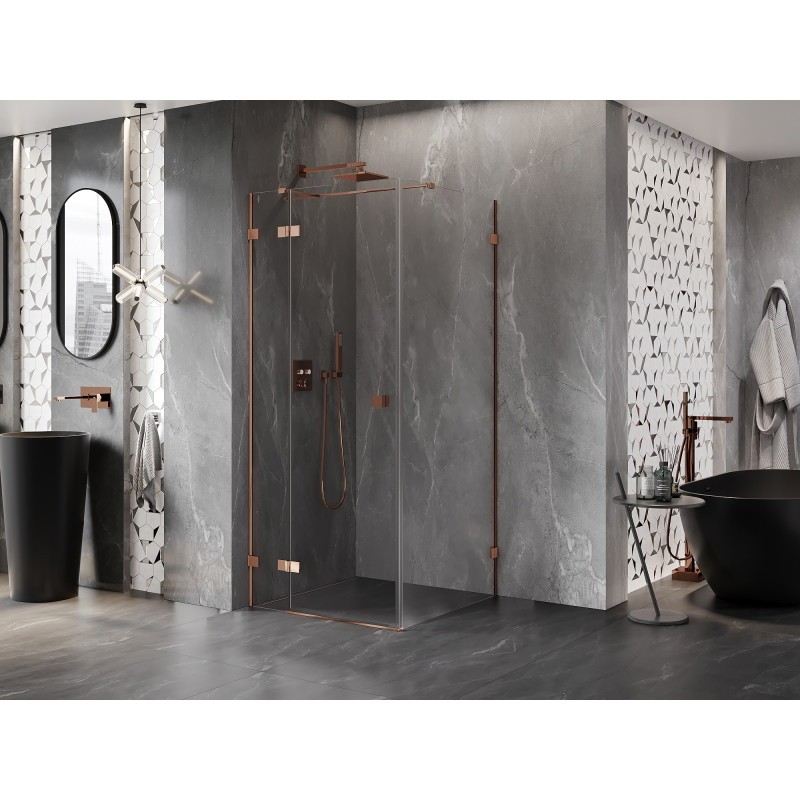 Specifikace produktu: Rozměr: 120x120 cm (levé dveře 120 cm, stěna 120 cm) Výška: 200 cm Strana montáže: Levá Vchod: Dveře s výklopnými křídly Barva skla: Průhledná Povrchová úprava: Růžové zlato Profil: Hliník Podpěra: Nerezová ocel Max. délka podpěry: 150 cm Podpěru lze zkrátit na míru Typ skla: Tvrzené Tloušťka skla: 8 mm Povrchová úprava pro snadné čištění Nastavitelná šířka Dva montážní systémy: - S profilem, který umožňuje vyrovnání nerovností stěn - Bez profilu pro dokonale rovné stěny Možnost montáže na sprchovou vaničku nebo obklady Mechanismus pro zvedání a spouštění dveří Mosazné svorky a panty v jedné rovině se sklem Magnetický proužek a elastomerové těsnění pro odvod vody Hliníkový práh těsnění dveří