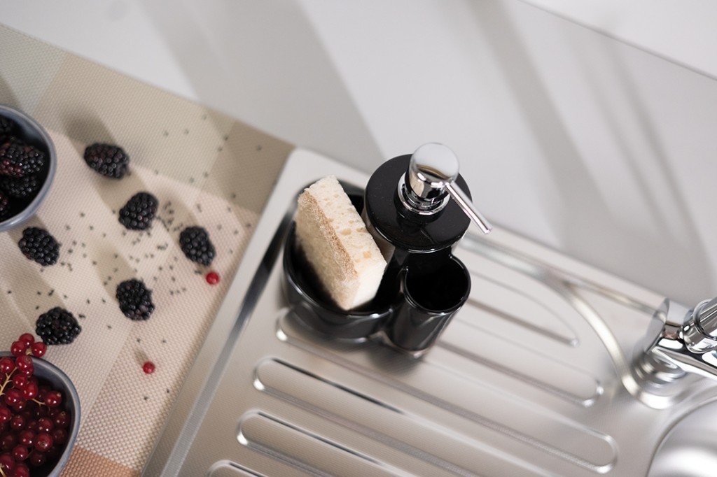 Dávkovačů Lupo se vyznačuje zajímavým tvarem – mají dvě zaoblené přihrádky pro uložení příslušenství do myčky. Chromované čerpadlo dávkuje fixní množství tekutiny, čímž optimalizuje její spotřebu. Dávkovačů Lupo je k dispozici ve třech provedeních: bílé, šedé a černé.