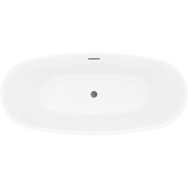 Specifikace produktu: Rozměry: 170 x 75 cm Výška: 58 cm Hloubka: 45 cm Instalace: Volně stojící Materiál: Sanitární akrylát Barva: Bílá/Černá Povrchová úprava: Kartáčovaná pistolově šedá Otvor pro přepad: Ano Otvor pro baterii: Ne Sifon a zátka click-clack jsou součástí balení Odolné vůči baterii a UV záření