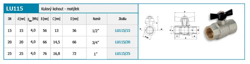 Materiál tělesa a koule: mosaz CW617N PN-EN 12164