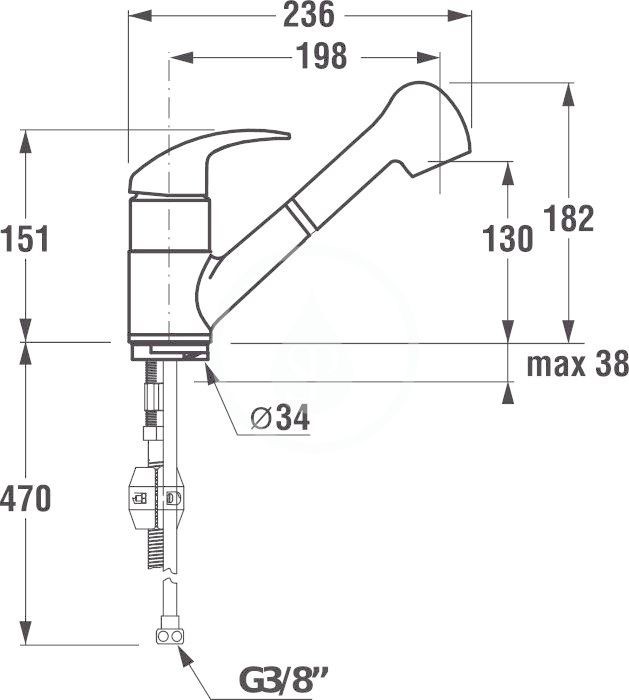 Dřezová stojánková páková baterie s výsuvnou sprchou