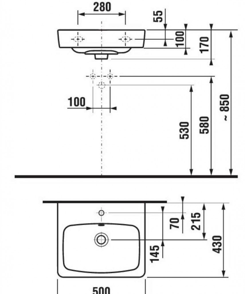 Nástěnné umyvadlo s otvorem pro baterii