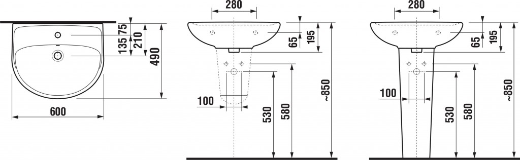 - umyvadlo je možné kombinovat s krytem sifonu nebo sloupem