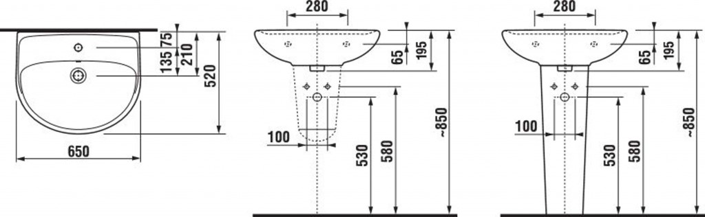 Závěsné umyvadlo 65 cm bez otvoru pro baterii