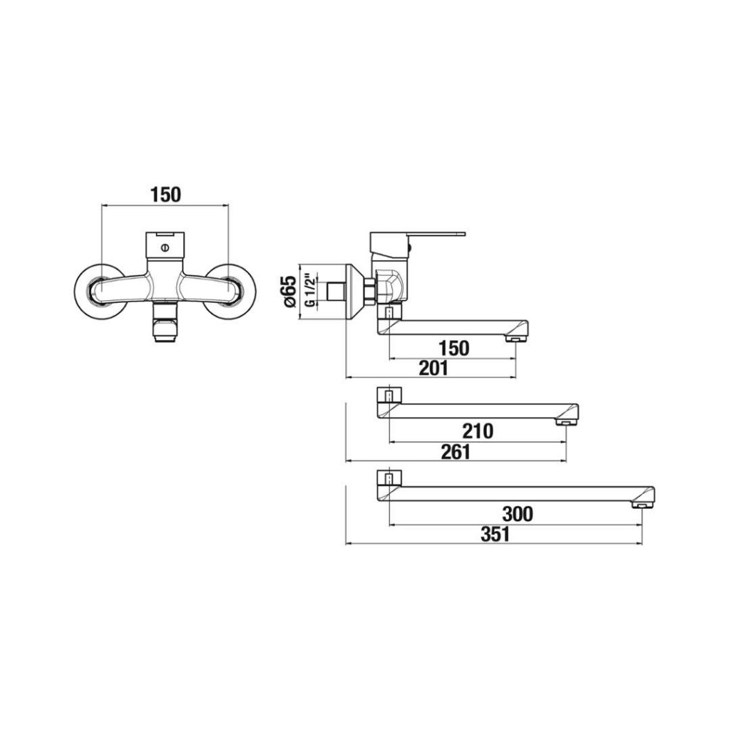 Nástěnná umyvadlová baterie, výtok 300 mm
